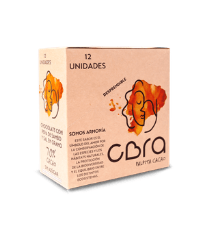 Contiene: Caja con 12 barras de chocolate de 50 g sabor Pepa de Sambo y y Sal en Grano.